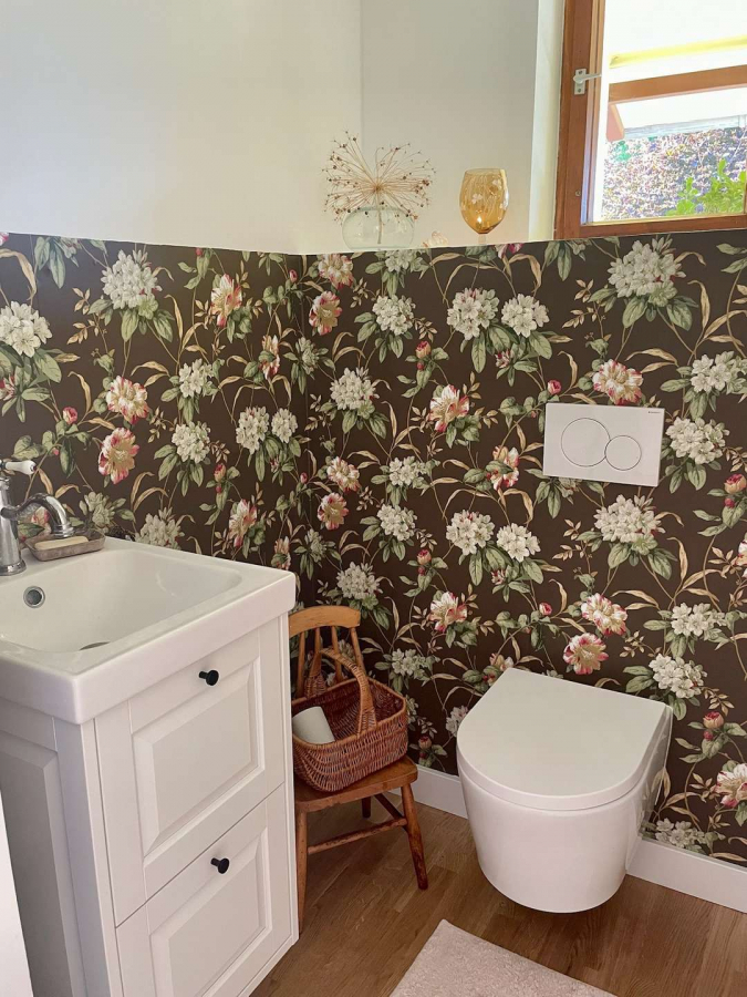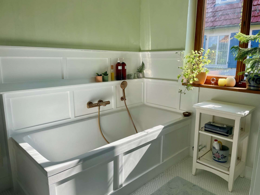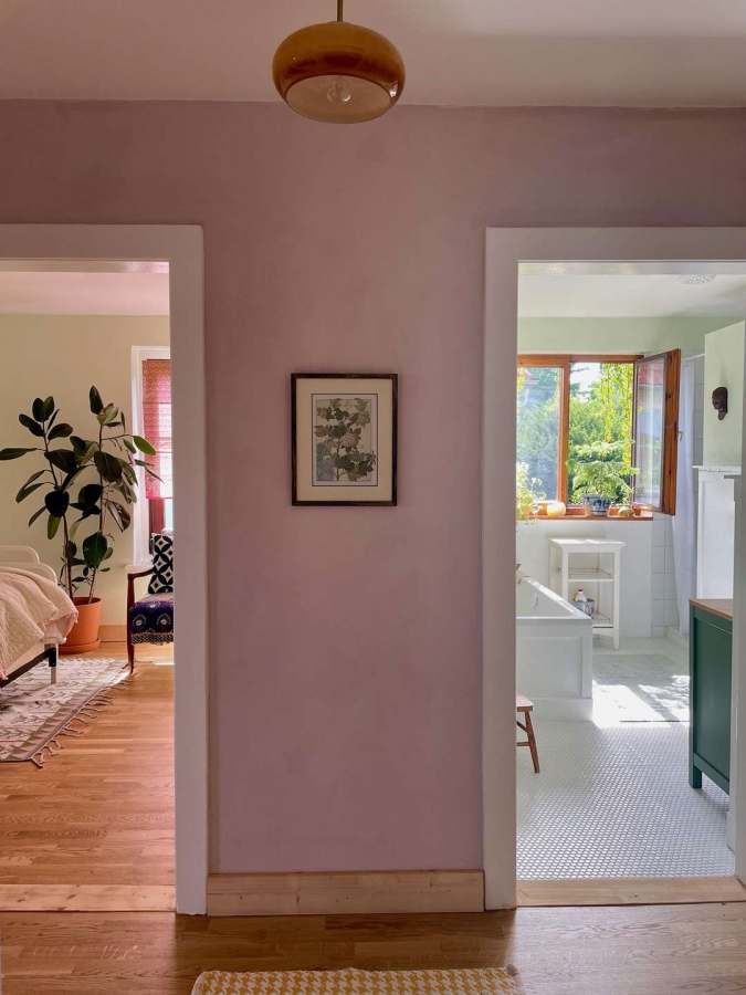 + Wände mit atmungsaktiver Kalkfarbe gestrichen – ökologisch und stilvoll