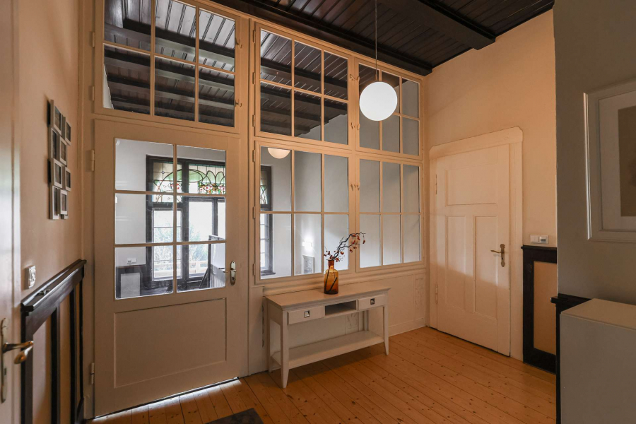 Original erhaltene Stilelemente aus der Gründerzeit und dem Jugendstil verleihen dem Anwesen eine unverwechselbare Atmosphäre und zeugen von handwerklicher Qualität vergangener Epochen. Eine noch zu errichtende, separate Einliegerwohnung im Souterrain kann das Nutzungsspektrum erweitern – ideal für Gäste, ein Au-pair oder als diskreter Homeoffice-Bereich.