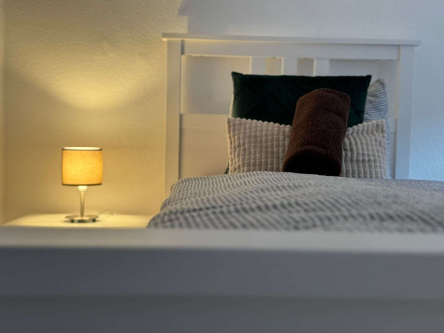 Die Wohnung verfügt über zwei separate Schlafzimmer, die jeweils mit LED-Fernsehern mit Smart-TV-Funktion ausgestattet sind. Herzstück der Wohnung ist die großzügige Wohnküche mit Einbauküche (Herd, Ceranfeld, Mikrowelle), großem Kühlschrank mit Tiefkühlfach sowie einer großen Sitzgruppe. Ein separater Hauswirtschaftsraum mit Waschmaschine und Reinigungsmitteln bietet zusätzlichen Komfort im Alltag.
